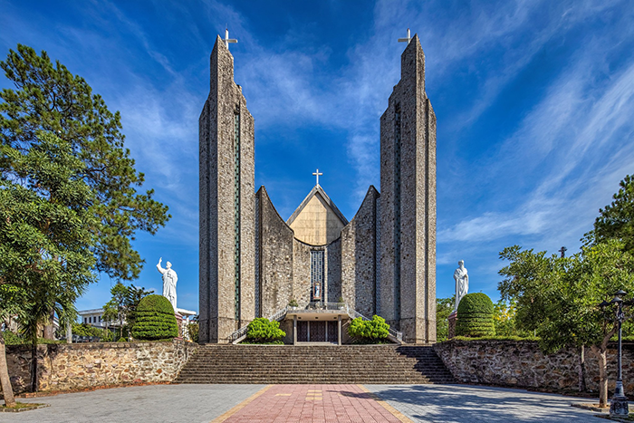 Nhà thờ chính tòa Phủ Cam nổi bật với thiết kế hiện đại và nghệ thuật cổ điển.